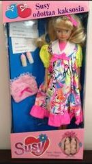 For some reason I have 3 of these dolls. I only remember the 1st one with beautiful, baby pink maternity dress. She was having a boy. Then there was Susy with twins. Those twins were ridiculously tiny. I have 3rd Susy too but no idea with what kind of dress she came with.