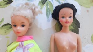 I remember getting her from toy shop in Tampere, called Ihme ja Kumma, which doesn’t exist anymore. One of my childhood friends had one of these too. I remember feeling kinda disappointed of getting another blonde doll, again. I was hoping to get the one with ginger hair.